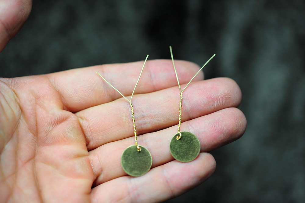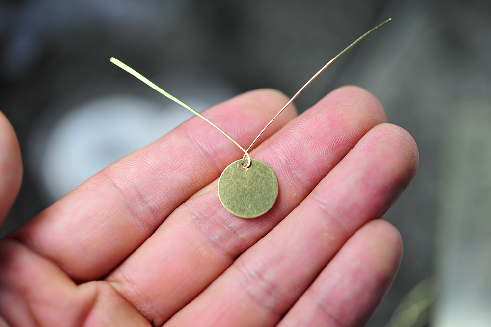 황동판 뒤로 나온 두개의 철사 가닥은 사진에서 보이는 것처럼 서로 반대방향으로 8자 형태로 말아주어 마감해 줍니다.